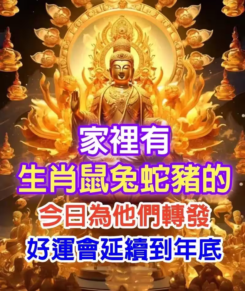 家裡有生肖「鼠兔蛇豬」的,今日為他們轉發,好運會延續到年底