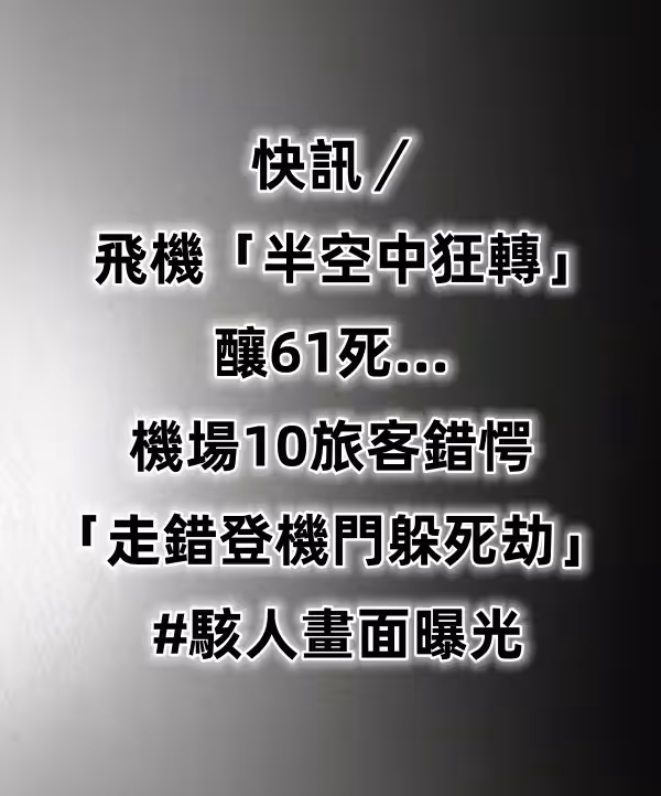 快訊/飛機「半空中狂轉」釀61死... 機場10旅客錯愕「走錯登機門躲死劫」 #駭人畫面曝光