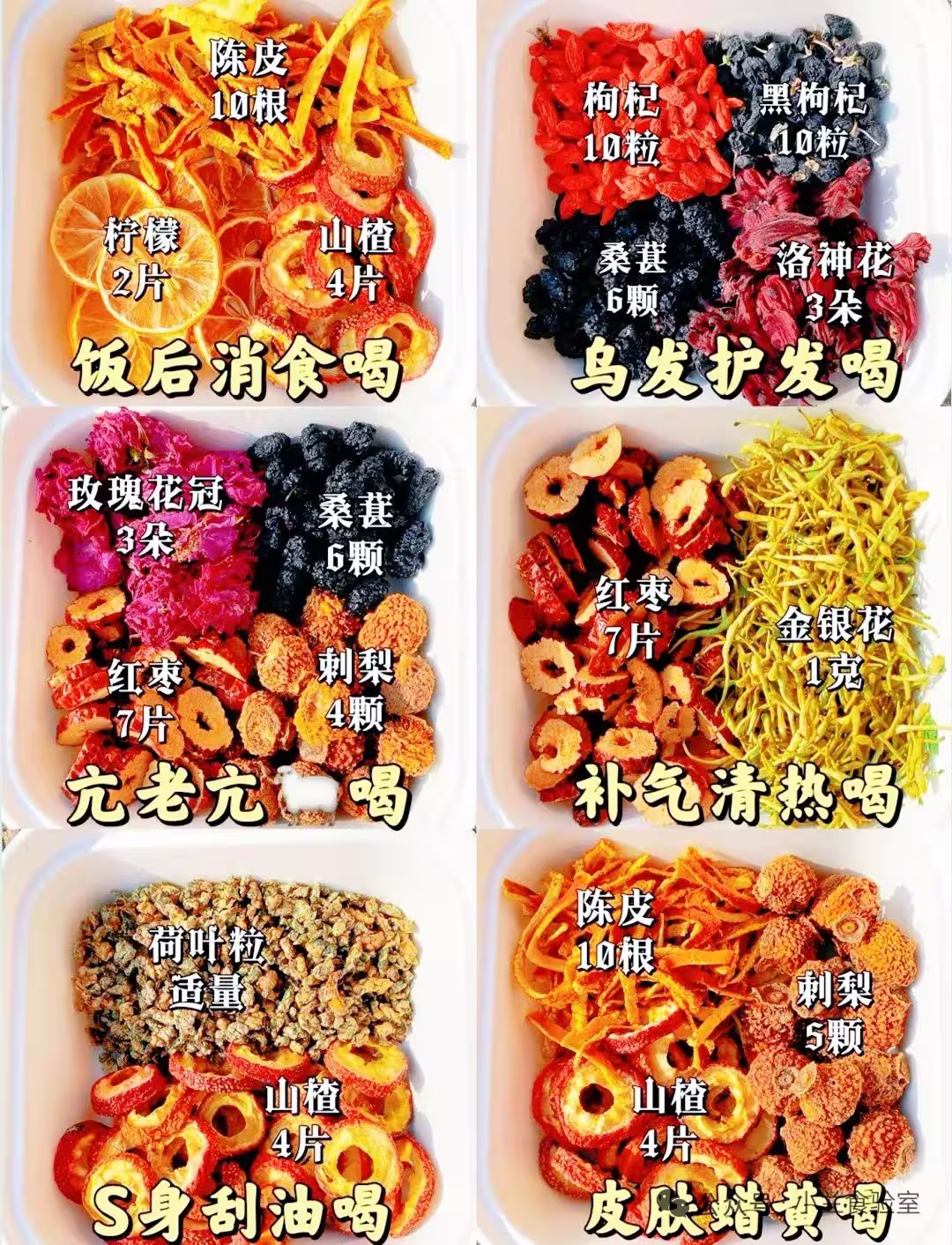 配方:紅棗干7g(約7片)、金銀花1g、桂圓乾4g(約4顆)