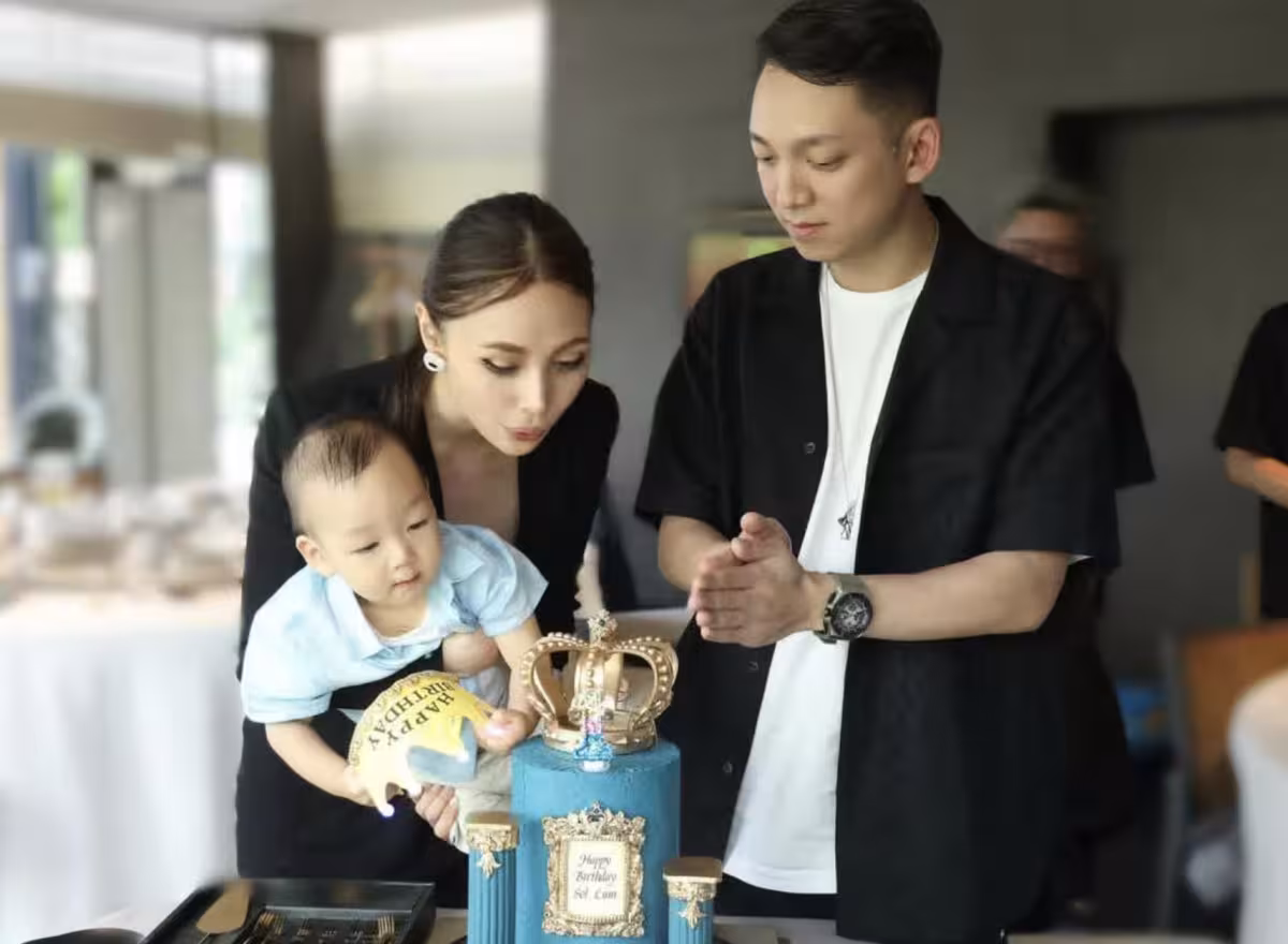 林建名混血長孫在上海慶生,剛滿周歲長得像父親,謝玲玲母女在場