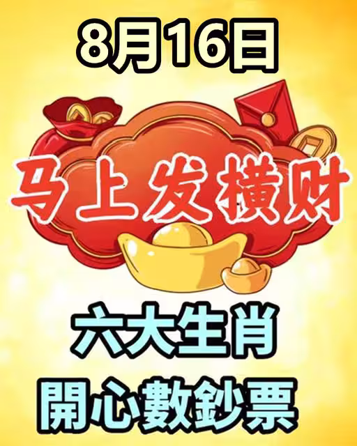 8月16日馬上發橫財,六大生肖開心數鈔票~