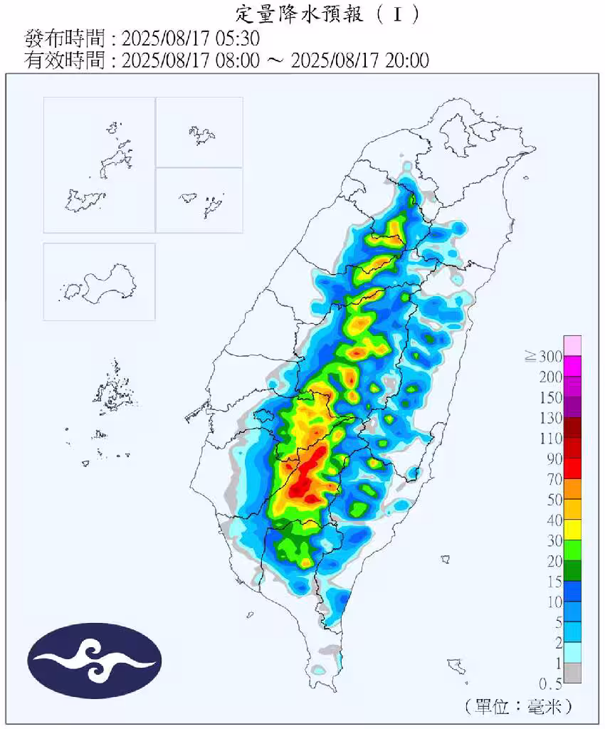 氣象署說,今天南方雲系北移,東南部、恆春半島有局部短暫陣雨,基隆北海岸、東北部亦有零星短暫陣雨,其他地區為多雲到晴,午後新竹以南、東部山區有局部短暫雷陣雨,中部山區有局部大雨,南部有局部短延時豪雨機率。