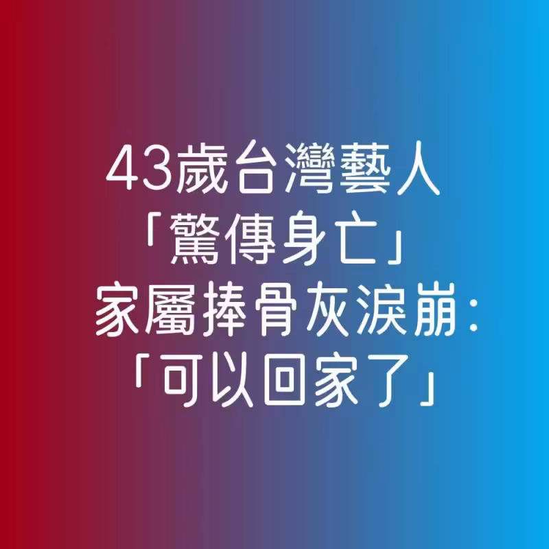 43歲台灣藝人「驚傳身亡」死因曝光 家屬捧骨灰淚崩:「可以回家了...」