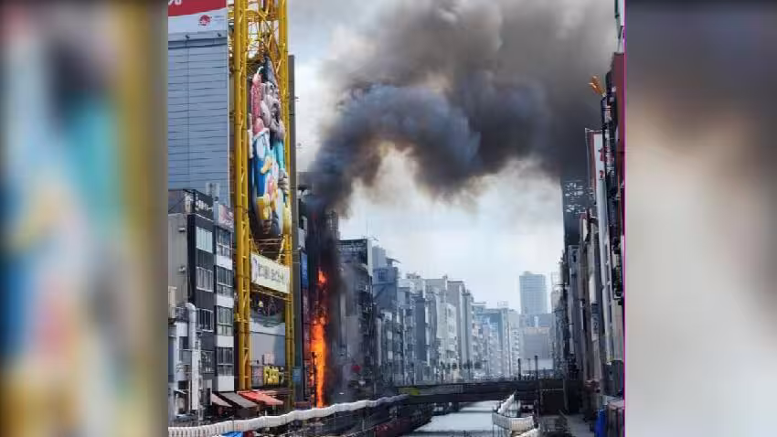 現場竄出的濃煙量驚人,幾乎和整棟大樓一樣高,還能看見火焰冒出,場面相當嚇人。