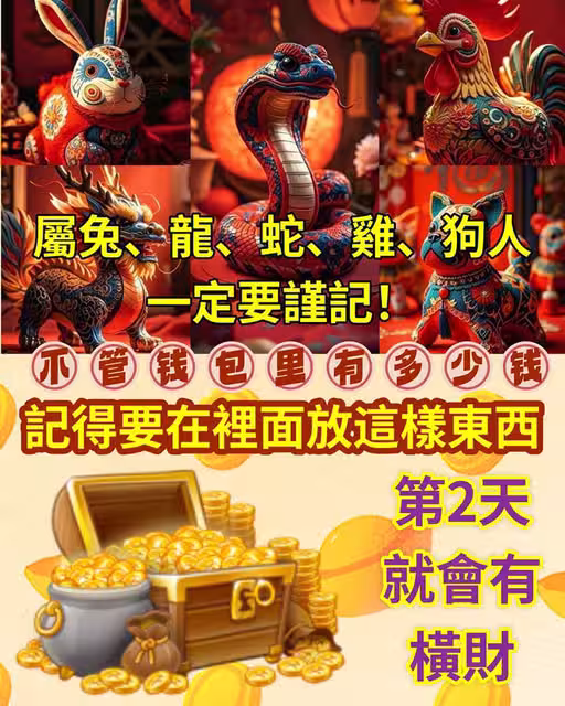 屬兔、龍、蛇、雞、狗人一定要謹記!不管錢包里有多少錢,記得要在裡面放這樣東西,第2天就會有橫財!屬兔、龍、蛇、雞、狗人一定要謹記!
