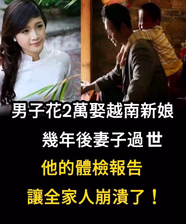 男子花2萬娶越南新娘,幾年後妻子過世,他的體檢報告讓全家人崩潰了!