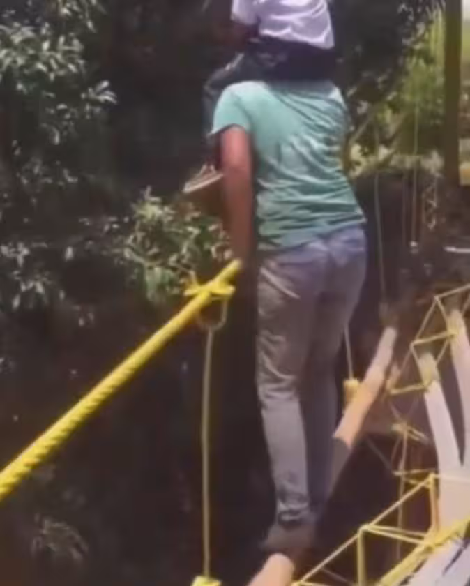她抱兒坐肩上走獨木橋,媽「腳滑踩空」男童下秒慘墜溪谷:實時影片瘋傳