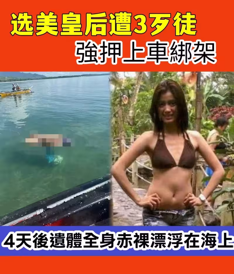 選美皇后遭3歹徒強押上車綁架 4天後遺體全身赤裸漂浮在海上