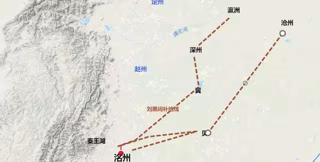 洺水城陷落後,劉黑闥的補給是從滄、貝、瀛、冀等處,水陸並進。