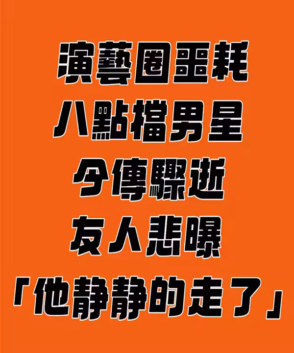 演藝圈噩耗!八點檔男星今傳驟逝~友人悲曝「他靜靜的走了」