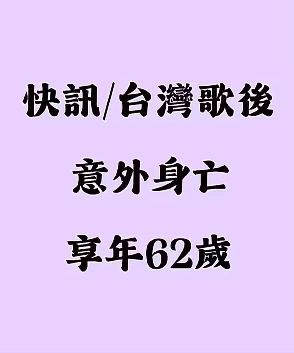 快訊 / 台灣歌后意外身亡! 享年62歲.
