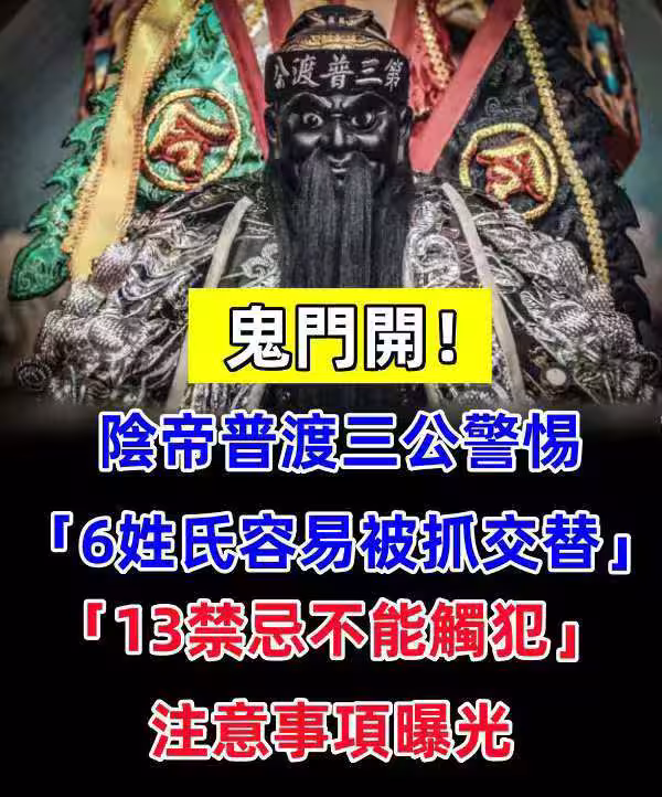 鬼門開!陰帝普渡三公警惕「6姓氏容易被抓交替」「13禁忌不能觸犯」注意事項曝光!