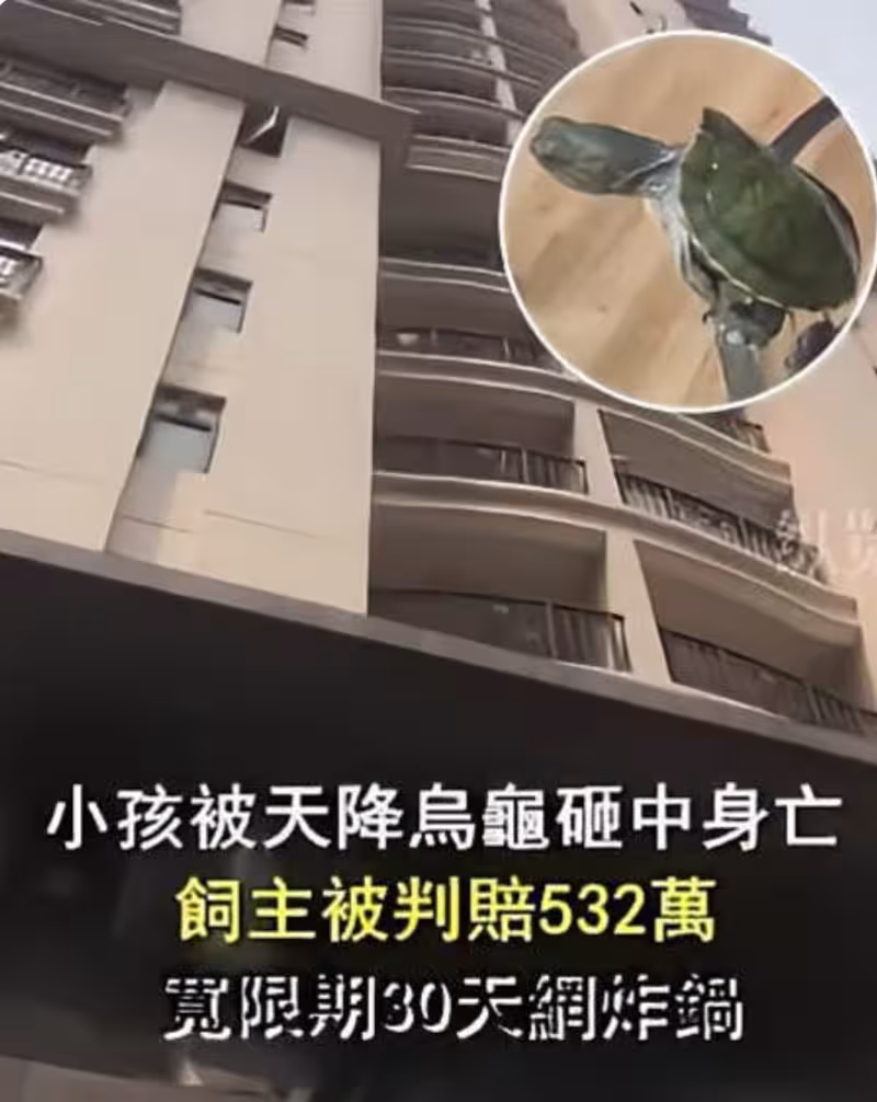 天降「烏龜」砸中幼童竟奪命!飼主判賠532萬...30天寬限期讓全網炸鍋