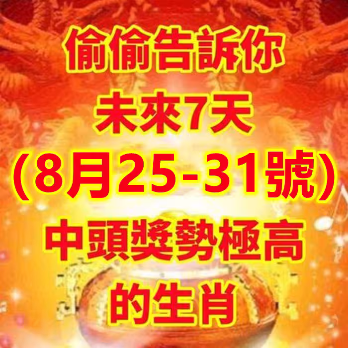 偷偷告訴你:未來7天(8月25-31號)中頭獎勢極高的生肖