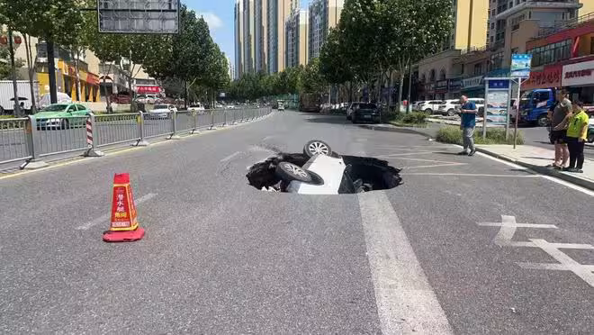一處道路突然塌陷吞沒過路越野車,4人被安全救出,合肥市政部門回應