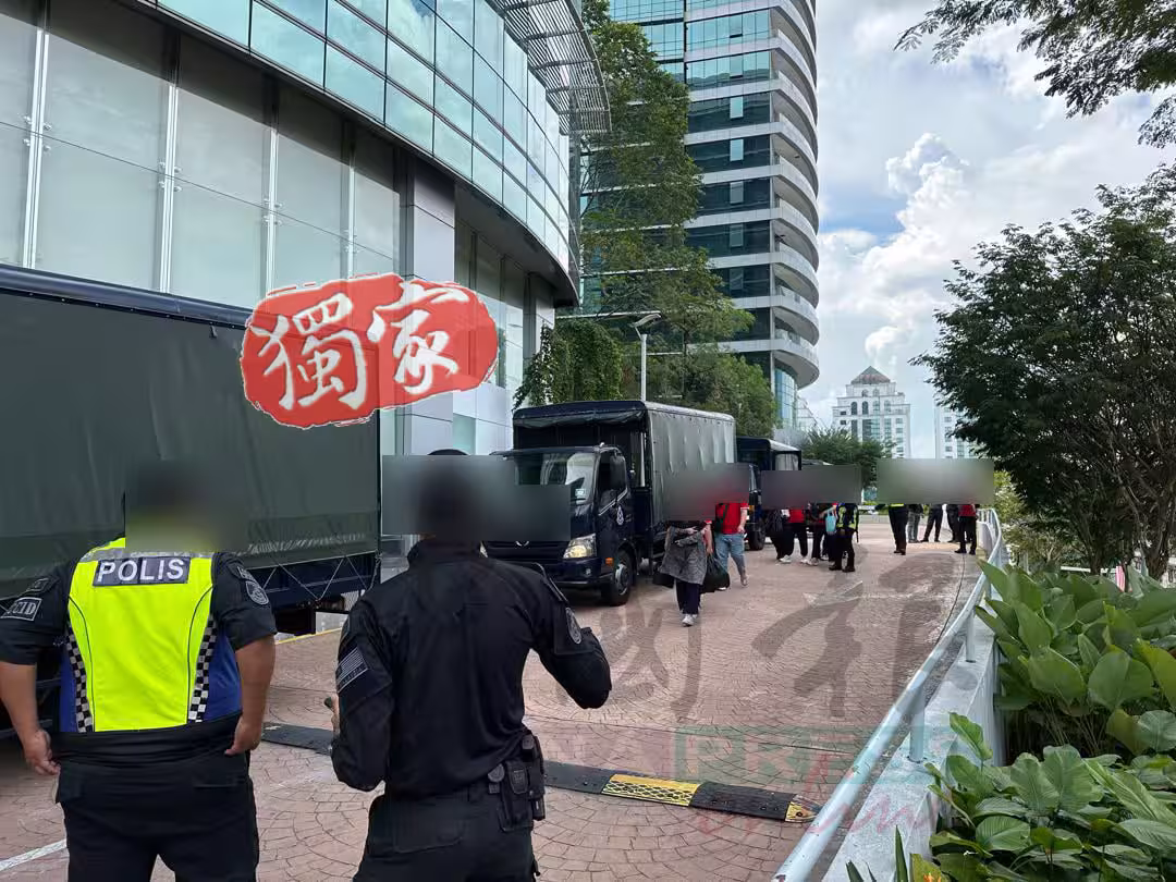 警出動多輛大卡車 大突擊商業大樓 破詐騙網賭 捉百人