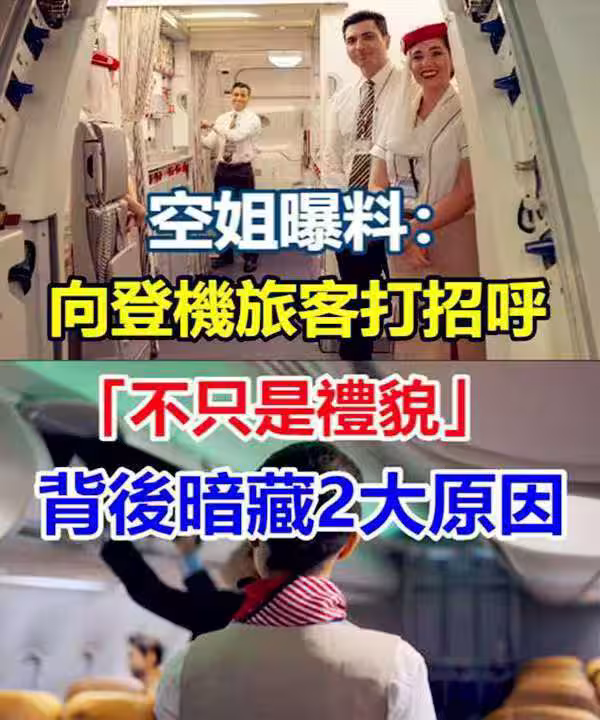 空姐曝料:向登機旅客打招呼「不只是禮貌」 背後暗藏兩大原因,網恍然大悟:難怪一直看我