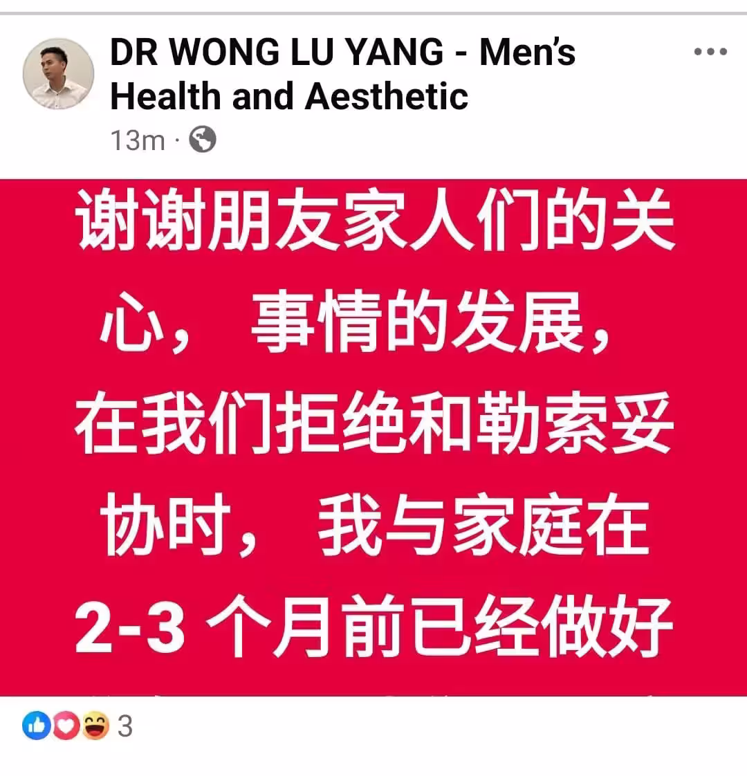 「我已向警方報案,並保留對付濫用我個人資料、發布誹謗內容或騷擾我家人的個人或組織採取法律行動。」