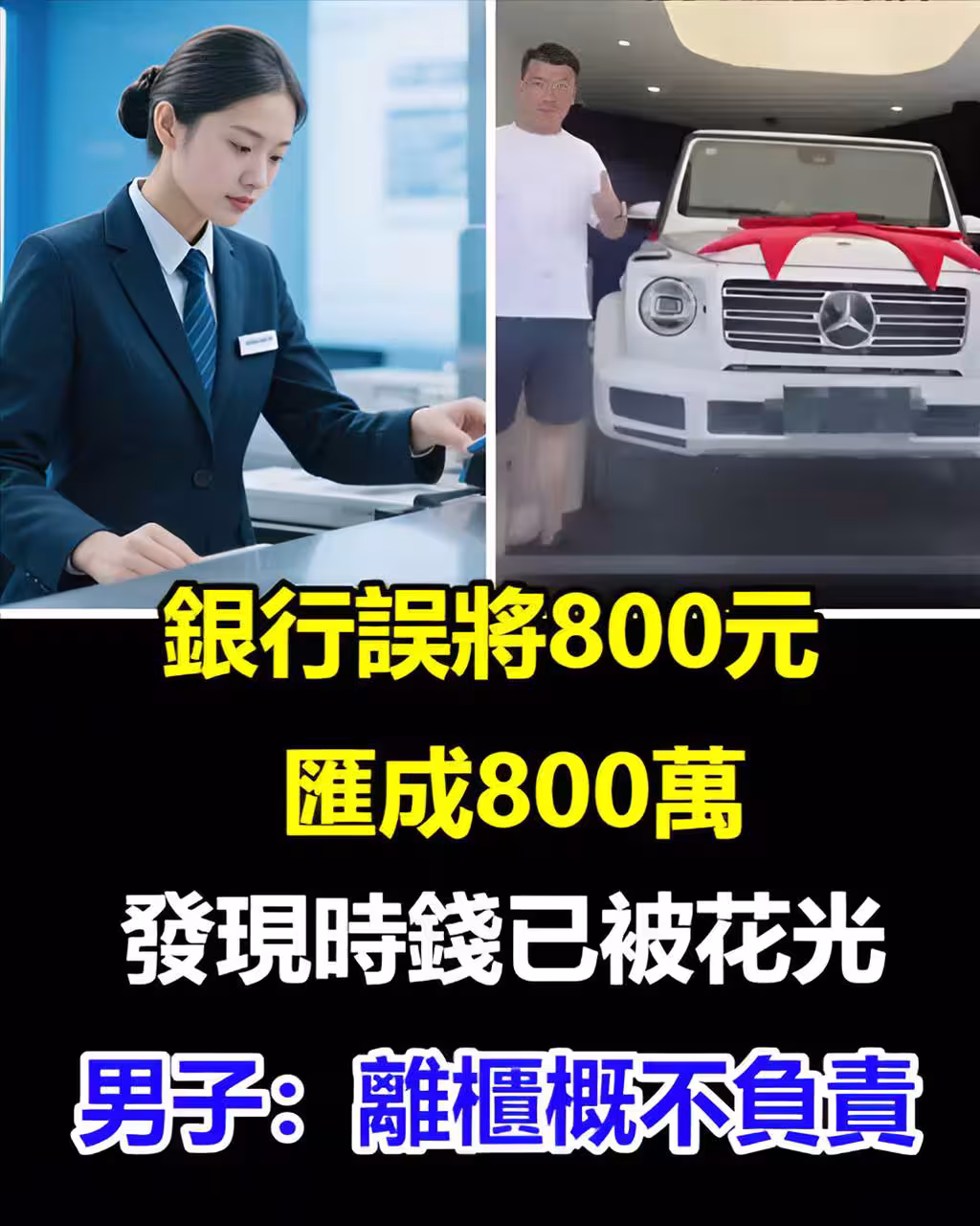 銀行誤將800元匯成「800萬」!發現時錢已被儲戶花光,男子:離櫃概不負責