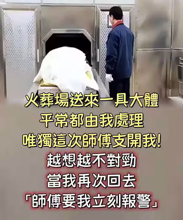 火葬場送來一具大體,平常都由我處理,唯獨這次師傅支開我!!越想越不對勁,當我再次回去「師傅要我立刻報警.」