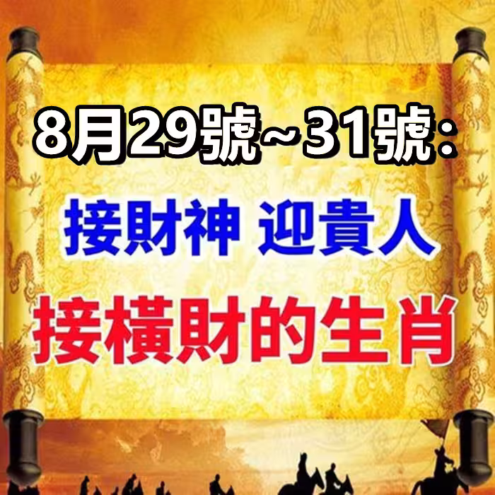 8月29號~31號:接財神,迎貴人,接橫財的生肖