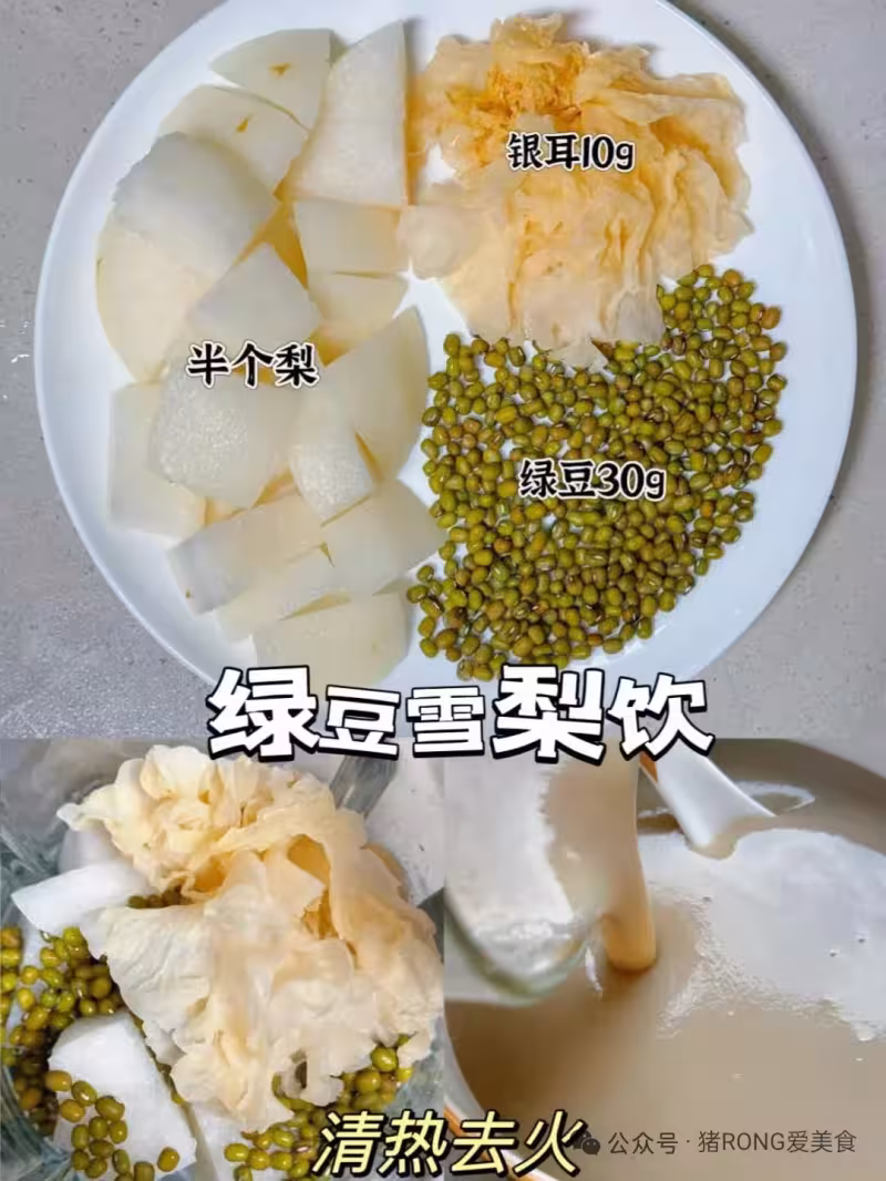 2️⃣綠豆雪梨飲:半個梨+綠豆30g+銀耳10g+加水破壁機水位線600ml位置