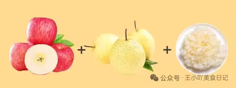 食材:蘋果半個、雪梨半個、銀耳 1 小朵(銀耳提前泡 1 小時,撕成小朵)
