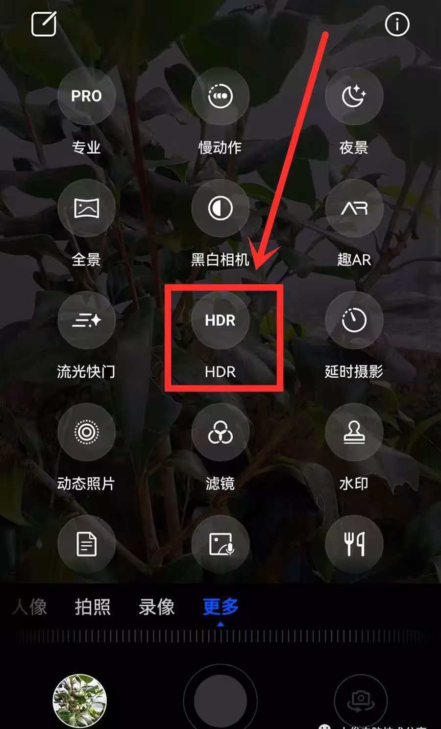 打開【更多】之後,就會進入到【更多功能】設置主頁面,在這裡我們往下看,就可以看到一個【HDR】的開關,我們要找的就是它,之所以我們用手機拍出來的照片會非常不清晰,非常不美觀,其實就是由於沒有打開這個開關導致的,那麼此時我們點擊這個【HDR】