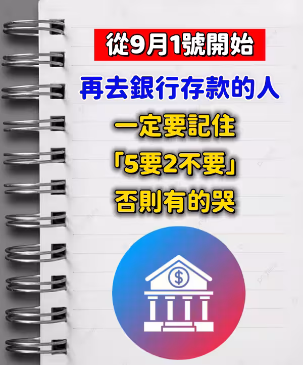 從9月1號開始,再去銀行存款的人,一定要記住「5要2不要」否則有的哭...