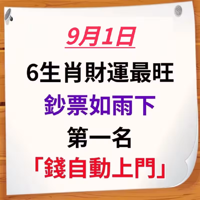 【9月1日】6生肖財運最旺 鈔票如雨下!第一名「錢自動上門」