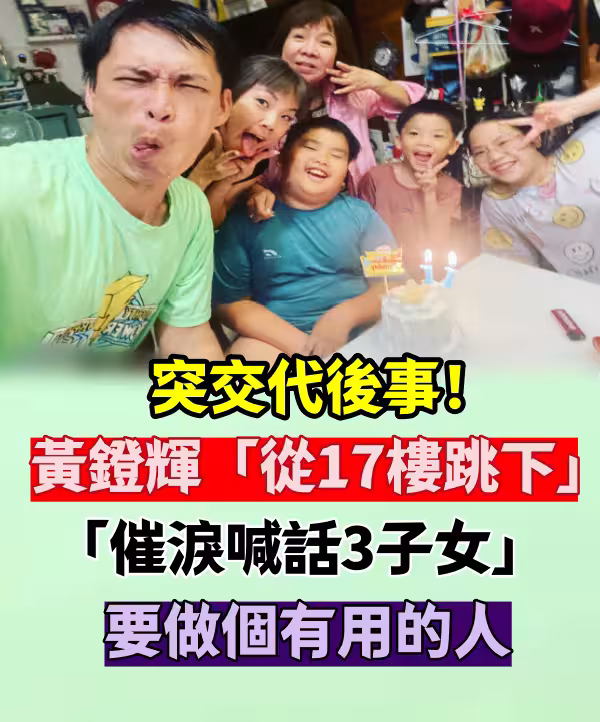 突交代後事! 黃鐙輝「從17樓跳下」 「催淚喊話3子女」: 要做個有用的人