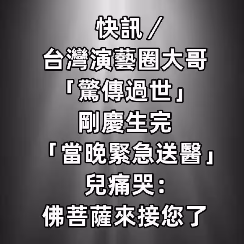 快訊/台灣演藝圈大哥「驚傳過世」!剛慶生完「當晚緊急送醫」兒痛哭: 佛菩薩來接您了