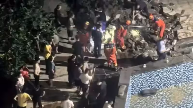 另外一段視頻則顯示,晚間現場泳池邊停了一輛消防車,消防人員挖開泳池邊的路面打撈救援,有人說,「挖掘機挖到半夜才挖出來了,七、八歲的小女孩。」