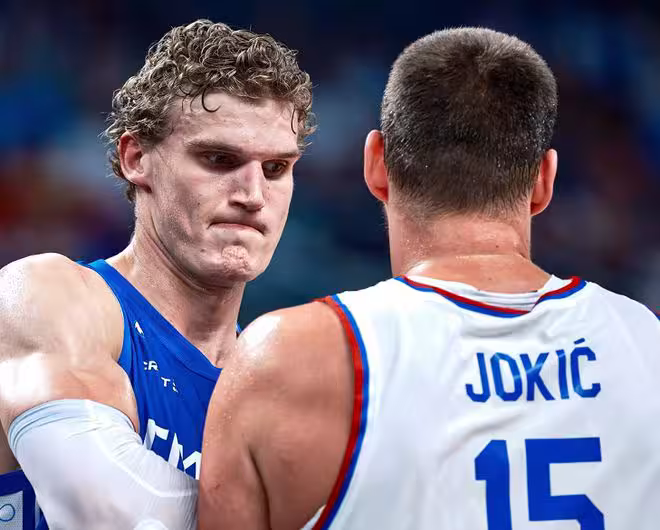 約基奇苦戰33分鐘,13投9中(三分球2中1),罰球19中14,空砍33分+8籃板+3助攻+3搶斷+1蓋帽,攻防兩端燃儘自己!塞爾維亞隊爆冷輸球,籃板被爆略顯掙扎,尤其是前場籃板,12-20被芬蘭隊碾壓。更關鍵的是,隨著博格丹等人傷停,塞爾維亞隊的進攻穩定性和威懾力不足以掩蓋防守端的短板。尤其是三分線外,古德里奇8中1,多布里奇6中1,他們用一次次打鐵為塞爾維亞隊奏響哀樂。那一刻,我相信約基奇會無比想念博格丹:你若安在,何愁大業不成?