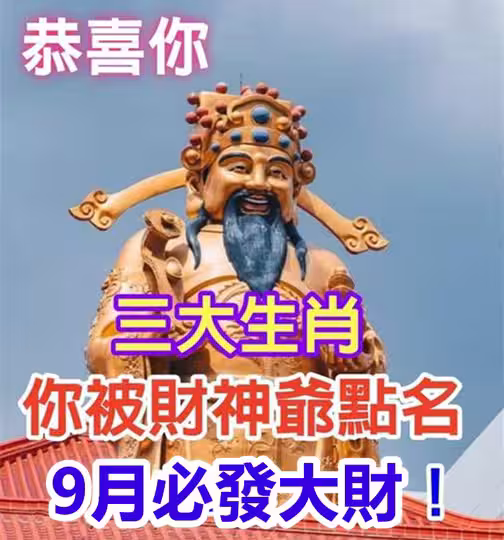 明天 「9月19號」 三生肖 橫財最旺 發久久~