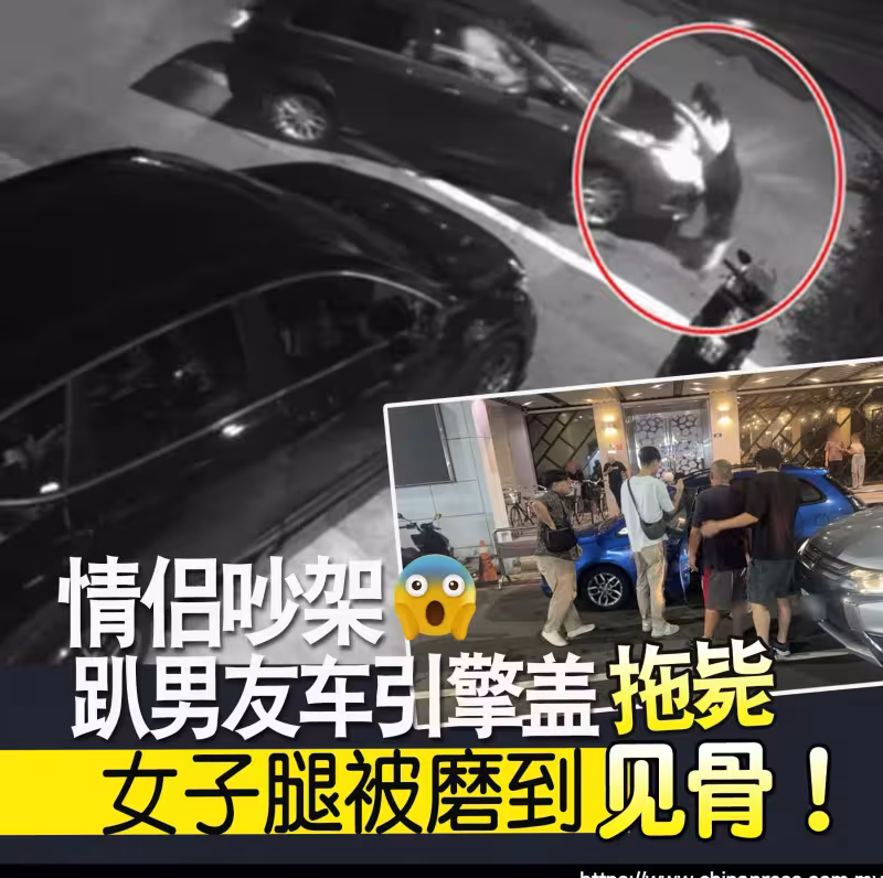 情侶爭執 女趴引擎蓋遭男友拖行輾斃 女子腿被磨到 見骨!