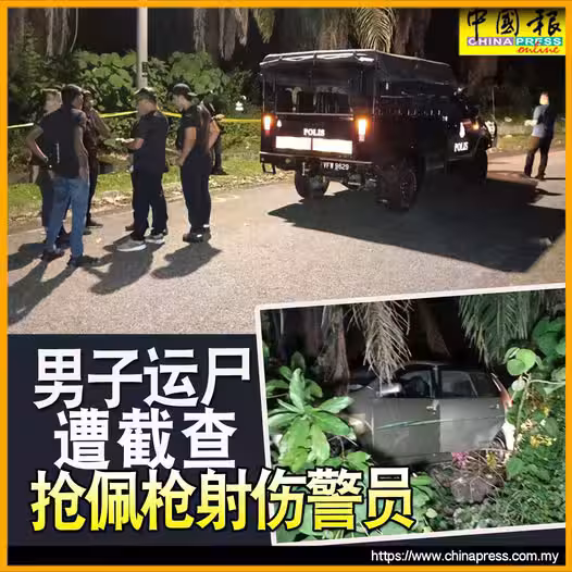 (怡保7日訊)男子在運屍途中,突遭警方截查,在逃跑過程中除搶走警員佩槍,更射傷及刺傷警員後逃走!