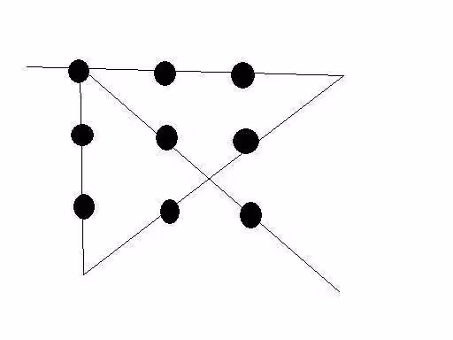 如果只是局限在這些點框成的區域裡,那是不可能一筆就能連上的,但如果跳出這個局限,問題就迎刃而解了。