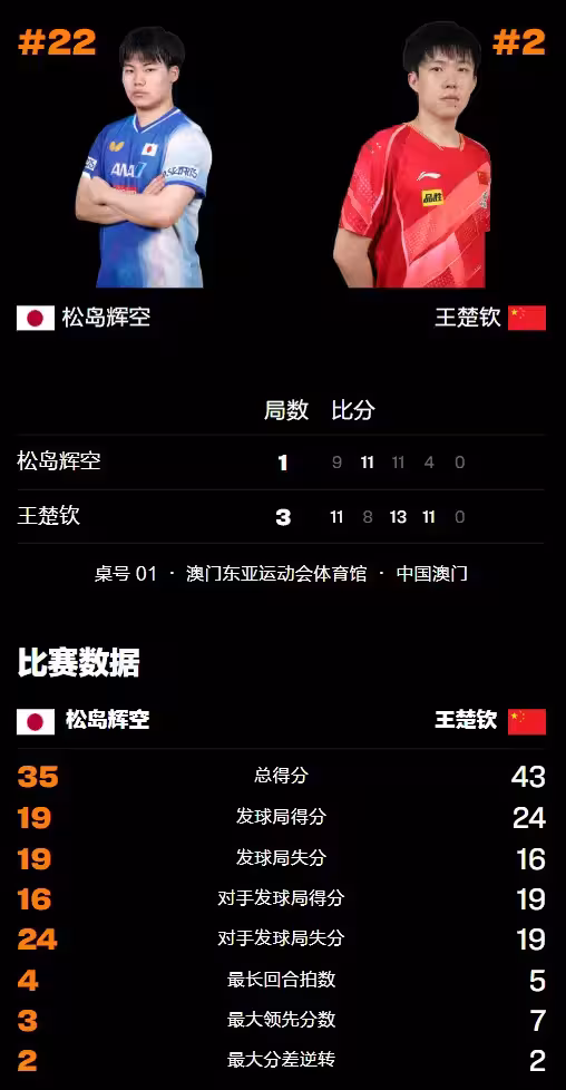 澳門冠軍賽:13人已晉級16強!王楚欽抗日成功,國乒3勝1負