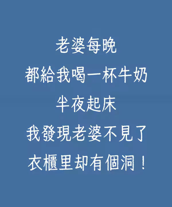 老婆每晚都給我喝一杯牛奶,半夜起床我發現老婆不見了,衣櫃里卻有個洞!!