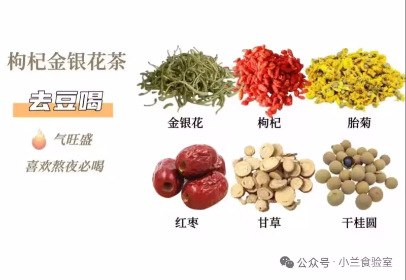▫️配方:金銀花10g + 枸杞12g + 胎菊6g + 甘草3片 + 干桂圓5顆 + 紅棗3顆