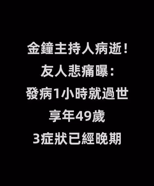 金鐘主持人病逝!友人悲痛曝:發病1小時就過世,享年49歲3症狀已經晚期。
