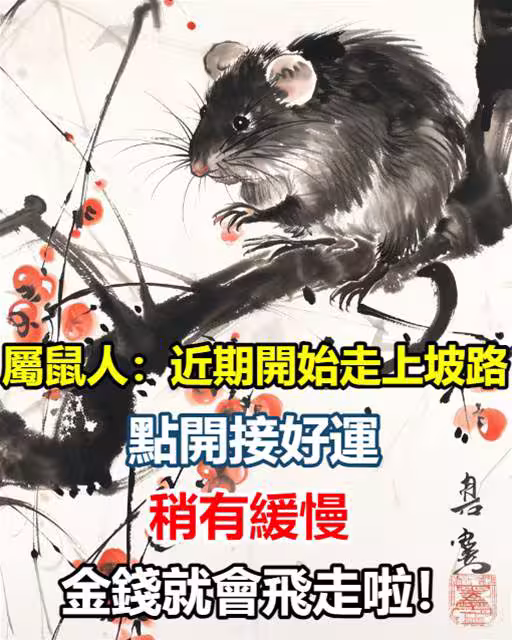 屬鼠人:近期開始走上坡路,點開接好運,稍有緩慢,金錢就會飛走啦!