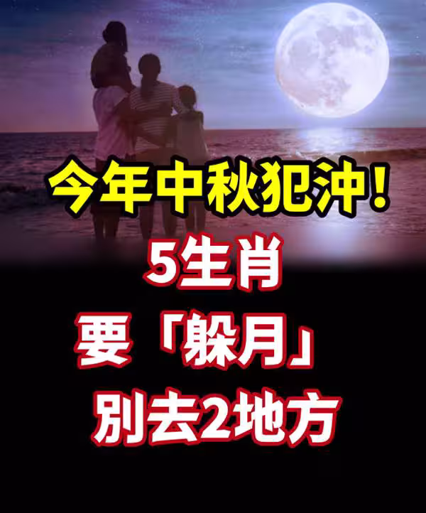 中秋節這天被認為是一年中「金」力量最強的時候,陰氣也相對較重,有5個生肖逢太歲,需要「躲月」,避免禍端降臨。