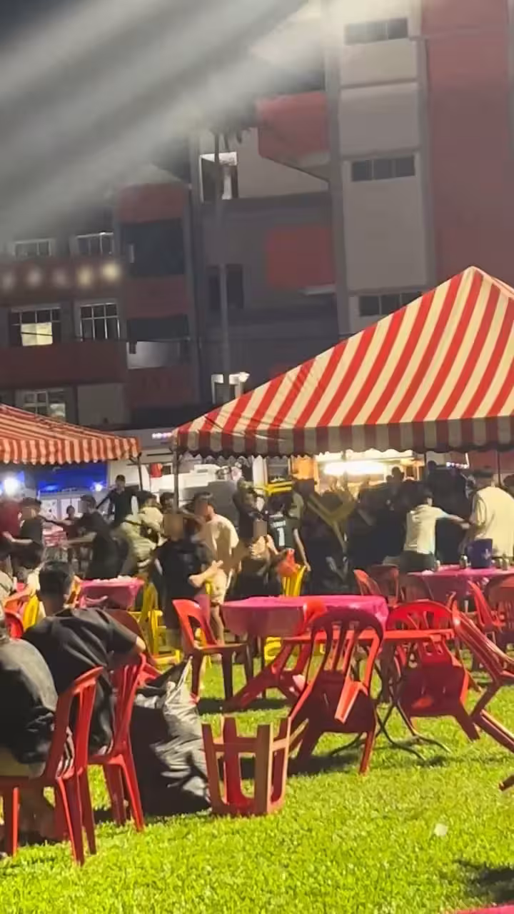 在社交媒體上流傳事發時的視頻顯示,一群人高舉黃色塑料椅子互相毆打,更有人倒在地上,遭周圍人手持椅子圍毆,也有人在混亂中被多人追打。