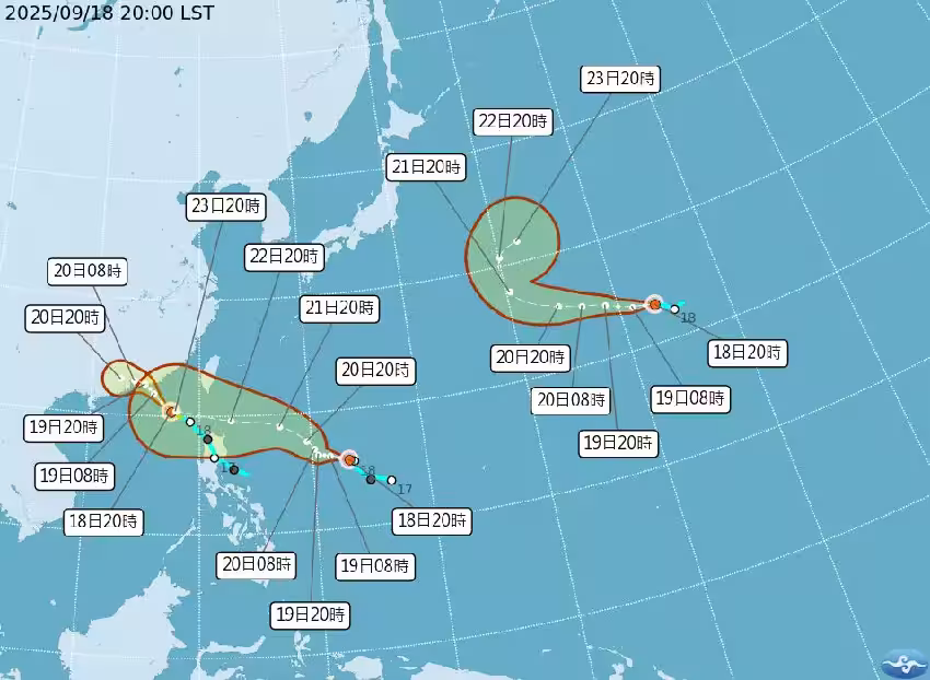中央氣象署分析,颱風預測未來朝西北西方向移動,周日(21日)起接近菲律賓東北方海面,下周一(22日)開始靠近台灣,下周二(23日)到下周三(24日)離台灣較近,路逕往台灣東南部海面及巴士海峽移動,強度恐增強到中度颱風等級。
