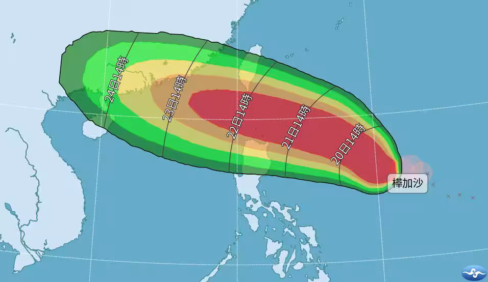 樺加沙颱風暴風圈驚人,北部風雨逃不掉。(圖/中央氣象署)