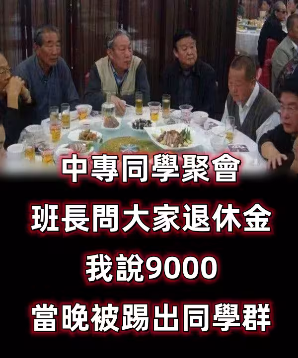 中專同學聚會,班長問大家退休金,我說9000,當晚被踢出同學群