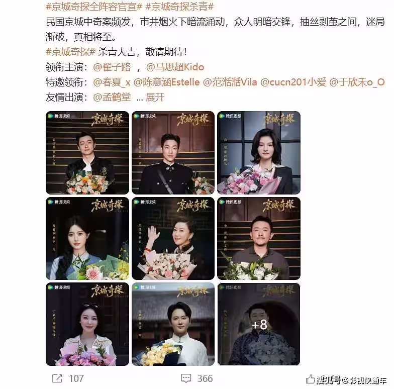 騰訊首播!民國探案劇《京城奇探》正式殺青,京城闊少×冷麵警員,雙男主聯手破連環懸案