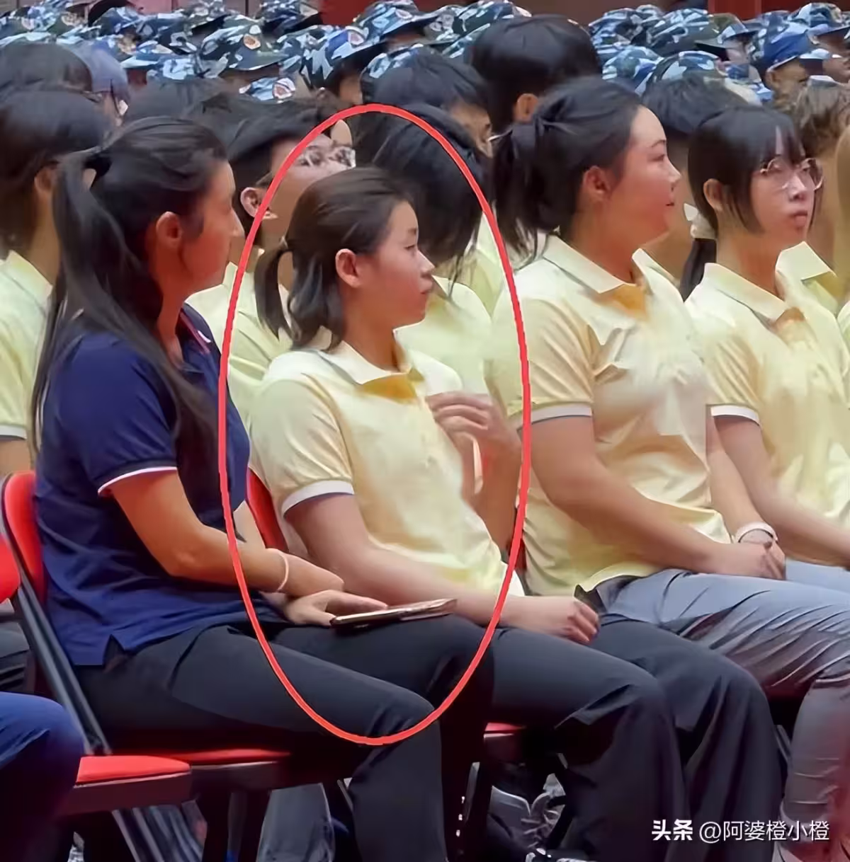 全紅嬋在開學典禮上穿著紅色短袖和黑色褲子,顯得整個人都很壯實,而且也沒有看到減肥的結果。